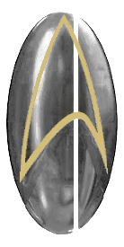 Das auf der Brust getragene Abzeichen unterscheidet sich leicht von dem danach getragenen, denn das später goldene Delta ist noch nicht gefüllt. Es ist jedoch davon auszugehen, dass es auch bereits ein "Tricom Badge" ist und somit einen Tricorder, persönlichen Transporter, Kommunikator, Universalübersetzer und PADD mit holografischem Interface beinhaltet. Eventuell sind die Funktionen noch nicht so umfassend wie später.