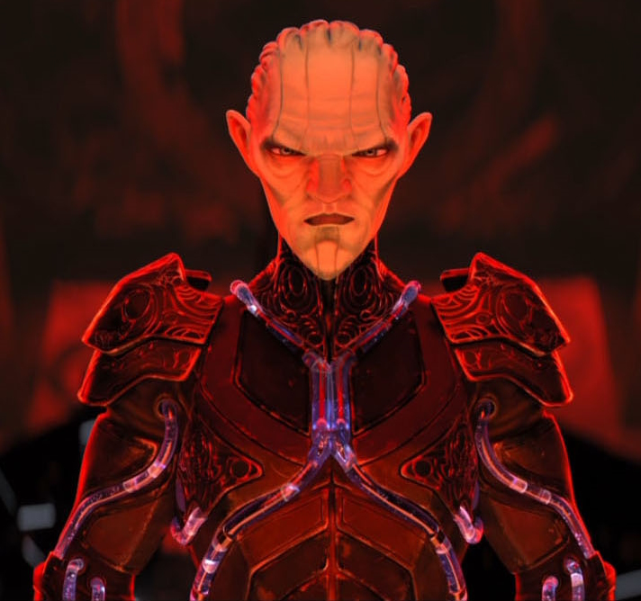 | Der Vau N'Alat mit dem Namen Diviner kommt aus der Zukunft und gehört nach einem schrecklichen Bürgerkrieg zwischen Pro-Föderation und Anti-Föderation Fraktionen auf seiner heimatwelt zu den letzten überlebenden. Als durch einen Zufall die U.S.S. Protostar in seiner Zeit landet, wird die Crew gefangengenommen und das Schiff zu einer Waffe gegen die Sternenflotte umgebaut. Die Vernichtung der Sternenflotte würde die Zerstörung seiner Heimatwelt verhindern. Die Crew unter Captain Chakotay schafft es die Protostar zurück durch die Zeitanomalie zu schicken, ehe eine Crew aus Vau N'Alat an Bord geht, doch die Waffe ist bereits eingebaut. Der Diviner reist ebenfalls in die Vergangenheit und sucht fast 20 Jahre nach der Protostar, da nicht klar ist wo und wann genau sie aus der Zukunft ankommt. Er führt eine eigene Strafkolonie im Delta-Quadranten mit deren Hilfe er die verschollene U.S.S. Protostar sucht und nutzt dafür jedes Mittel. Ihm zur Seite steht der gewissenlose Roboter Drednok und seine Tochter Gwyndala, als seine Nachfahrin und Nachfolgerin erschaffen wurde und er auf die Kontrolle der Protostar vorbereitet, sollte er sterben, noch ehe das Schiff gefunden wird. Als es einigen Gefangenen gelingt die U.S.S. Protostar zu finden und damit zu fliehen und Gwyndala zu entführen, verfolgt er das Schiff. Als er sich für das Schiff und gegen seine Tochter entscheidet, wendet sie sich gegen ihn. Durch den direkten Blickkontakt mit der Meduse Zero verliert er kurzzeitig den Verstand und das Gedächtnis, wird jedoch durch das Eingreifen des Vindicators, die die Sternenflotte infoltriert hat, wieder gesundgepflegt und macht sich mit ihr zusammen erneut auf die Suche nach dem Schiff. Zwar kommt die Waffe aus der Zukunft auf der Protostar zum Einsatz, doch seine Tochter und ihre Freunde zerstören das Schiff und stoppen so die Zerstörung der Sternenflotte. Er selbst findet dabei sein Ende im Kampf mit dem Vindicator, als er seiner Tochter hilft. | |