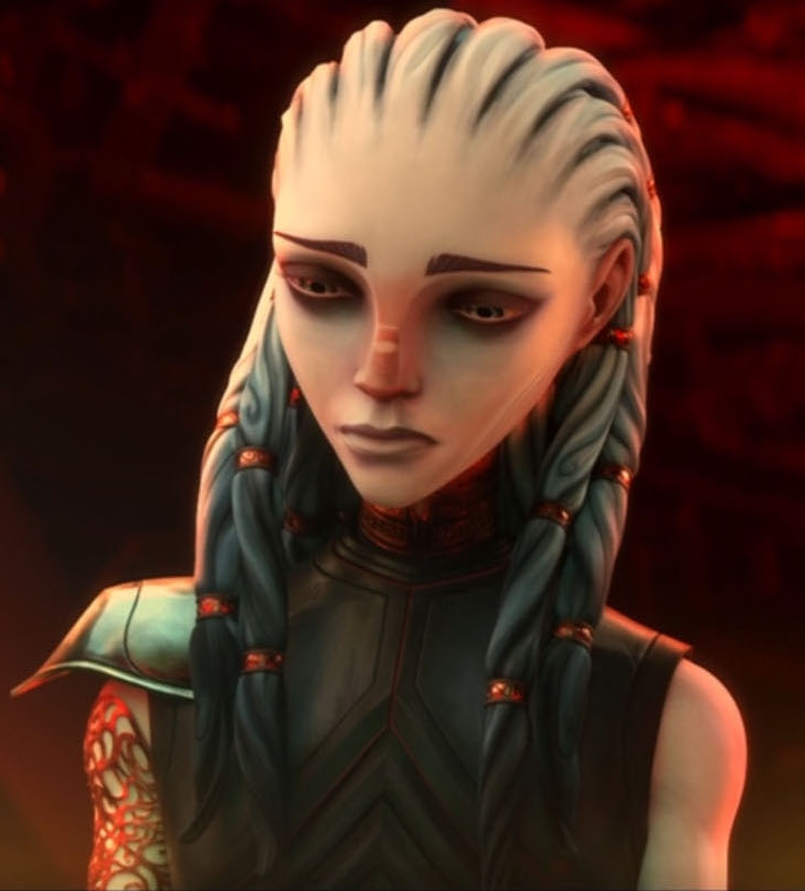 | Die Vau N'Alat Gwyndala ist die Tochter des Diviners. Er erschuf seine Nachfahrin, um sein Werk fortzusetzen, sollte er scheitern und bereitet sie auf die Nutzung der Protostar vor, um die Sternenflotte zu zerstören, noch bevor das Schiff überhaupt gefunden ist. Sie selbst weiß nichts davon und findet es erst später heraus. Gwyn ist intelligent, berechnend und eine Sprachexpertin. Sie träumt davon die Sterne zu erforschen, doch darf sie genau wie die Gefangenen die Strafkolonie Tars Lamora im Delta-Quadranten nicht verlassen. Als es einigen Gefangenen gelingt die U.S.S. Protostar zu finden und damit zu fliehen, ist sie als Gefangene mit an Bord des Schiffes und entkommt so ebenfalls aus der Strafkolonie. Sie übernimmt das Schiff bei der ersten sich bietenden Gelegenheit und will es ihrem Vater ausliefern. Als der Diviner sich für das Schiff und gegen seine Tochter entscheidet, wendet sie sich gegen ihn und schließt sich der Crew an. Das Verhältnis zu ihm wird auch nicht besser, als sie erfährt, warum sie erschaffen wurde. Nach seinem Tod und der Zerst rung der Protostar, tritt sie nicht wie ihre Freunde in die Sternenflottenakademie ein, sondern entschließt sich dazu ihr Volk zu suchen und behutsam auf den Kontakt mit der Föderation vorzubereiten. | |