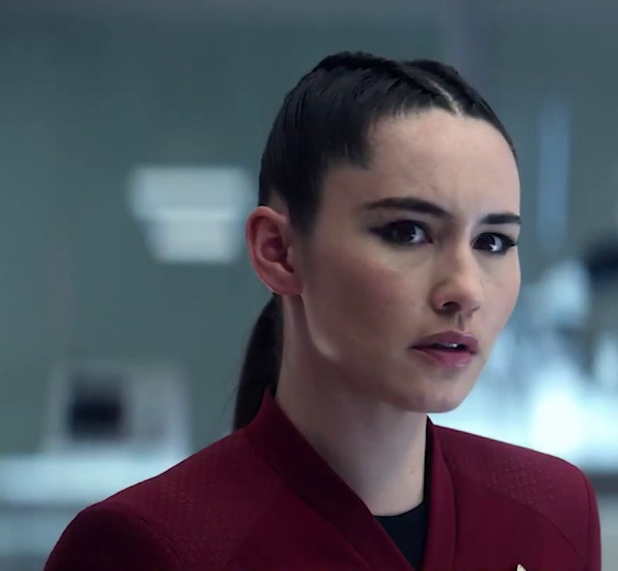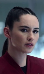 | Noonien-Singh, La'an | Mensch ♀ | Lieutenant | Sicherheitschef der Enterprise | La'an Noonien-Singh leidet ihre gesamte Kindheit unter ihrem Namen. Sie ist eine Nachfahrin des berüchtigten Khan Noonien Singh, eines berüchtigen Herrschers während der Eugenischen Kriege. In ihrer Kindheit ist ihre Familie auf einem Kolonieschiff, welches von den Gorn angegriffen wird. Sie ist die einzige überlebende und wird von zu Beginn ihrer Sternenflottenkarriere von Una Chin-Riley, damals noch Ensign, gerettet. Daraus erwacht der Wunsch ebenfalls der Sternenflotte beizutreten. Beide verbindet seitdem eine Freundschaft. Tatsächlich dienen sie später zusammen unter Pike auf der Enterprise. Lieutenant La'an Noonien-Singh dient als Sicherheitschef auf der Enterprise unter Captain Pike. Sie ist eher harsch, streng und emotionskalt und führt ihren Posten so sehr gut aus. Als die Enterprise auf die Gorn stößt, kann ein Mädchen gerettet werden. La'an macht es sich zur Aufgabe Verwandte des Mädchens zu finden, damit es nicht alleine aufwachsen muss. Dafür lässt sie sich freistellen und verlässt die Enterprise, verspricht aber zurückzukehren. Schließlich kann sie Verwandte des Mädchens finden und übergibt ihnen das Kind. Danach kehrt sie auf die Enterprise zurück. Durch Zufall stößt La'an auf einen Zeitagenten auf der Enterprise. Dieser übergibt ihr ein Gerät zur Zeitreise, ehe er stirbt. Die Zeitlinie verändert sich und La'an lernt einen alternativen James Kirk kennen. Gemeinsam reisen sie durch die Zeit ins Jahr 2022 auf der Erde, um den Auftrag des toten Zeitagenten zu beenden und die Veränderung der Zeitlinie zu verhindern. Die Enterprise befindet sich 2259 erneut in einer Auseinandersetzung mit den Gorn. Dabei wird La'an bei einer Rettungsmission auf einem Planeten von den Gorn mit einigen anderen entführt, kann aber dank ihrer Erfahrungen gemeinsam mit den anderen entkommen. | |