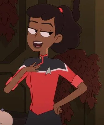 | Der Mensch Ensign Beckett Mariner arbeitet auf der U.S.S. Cerritos. Sie ist die Tochter von Captain Freeman, will jedoch lieber auf eigenen Füßen stehen. Sie hat zuvor bereits auf der USS Quito gedient, findet jedoch aktuell ihren Posten und Rang super. Regeln nimmt sie nicht so genau. | |