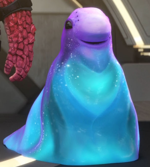 | Murf ist ein Wesen unbekannter Herkunft und wird gemeinsam mit anderen Gefangenen in der Strafkolonie Tars Lamora im Delta-Quadranten festgehalten. Er scheint aus einer schleimigen Masse zu bestehen und ob er wirklich intelligent ist, ist unklar, auf jeden Fall ist er jedoch so gut wie unkaputtbar. Zudem ist er ziemlich verfressen. Zusammen mit anderen Gefangenen flieht er mit dem Raumschiff U.S.S. Protostar aus der Strafkolonie. Während der Reise verpuppt er sich und wird humanoider. Zwar wird die Protostar zerstört, doch Murf tritt genau wie seine Freunde der Sternenflottenakademie bei, nachdem sie die Zerst rung der Sternenflotte verhindert haben. Admiral Janeway bernimmt die Verantwortung der Ausbildung. | |