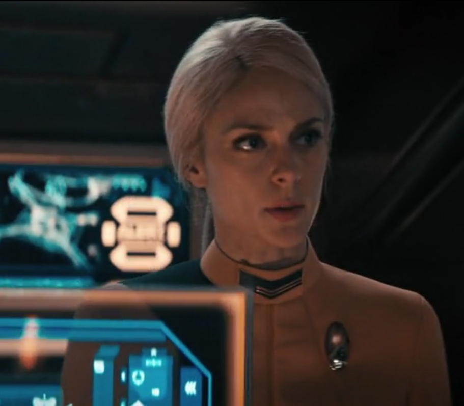 | Nach dem Tod von Airam übernimmt Lieutenant Nilsson die Aufgabe als Sporenantrieb OPS Offizier der Discovery. Sie reist mit dem Schiff und der Crew in aus dem 23. ins 32. Jahrhundert. Im 32. Jahrhundert behält sie zunächst unter Captain Saru, später dann unter Captain Burnham ihren Posten als Sporenantrieb OPS Offizier bei. Dabei wechselt ihre Abteilungsfarbe vom wissenschaftlichen Blau zum Gelb der OPS. Zudem wird sie zum Lieutenant Commander befördert. (Nach Staffel 1 wechselte man die Schauspielerin der Airam aus, da man diese beibehalten wollte, der Charakter aber sterben sollte. Die Schauspielerin übernahm ab Staffel 2 die Rolle der Nilsson.) | |