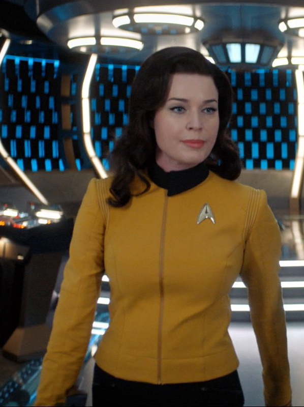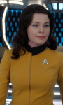 Chin-Riley, Una Prä-Streaming Seite | Illyrianer ♀ | Lieutenant Commander | Erster Offizier der Enterprise | Zu Beginn ihrer Sternenflottenkarriere als Ensign rettet Una La'an Noonien-Singh als einzige Üœberlebende eines Gorn Angriffs und weckt in ihr ebenfalls den Wunsch der Sternenflotte beizutreten. Beide verbindet seitdem eine Freundschaft. Tatsächlich dienen sie später zusammen unter Pike auf der Enterprise. Unter Captain Pike ist die eher emotionskalte Una Chin-Riley der Erste Offizier der Enterprise. Um ihren Namen macht sie gerne ein Geheimnis und wird in der Regel nur "Nummer Eins" genannt, was sie auch bevorzugt. Als Spock als Ensign auf die Enterprise versetzt wird, bleiben beide zusammen im Turbolift stecken. Dabei stellen sie fest, dass sie sich eigentlich recht gut verstehen und vertrauen sich gegenseitig Geheimnisse an, vereinbaren darüber jedoch Stillschweigen. Nach dem Krieg mit den Klingonen, überwacht sie die Reparatur der Enterprise, während Pike zu dieser Zeit das Kommando der Discovery übernimmt. Nach seiner Rückkehr auf die Enterprise bleibt sie sein Erster Offizier. Erst jetzt estellt sich heraus, dass sie Illyrianerin ist, eine Spezies die genetische Veränderungen an sich selbst vornimmt, um sich auf veränderte Umweltbedingungen anzupassen. Dies wird von der Föderation jedoch verurteilt und Una hätte niemals der Sternenflotte beitreten dürfen. Sie hat eine gestiegerte Stärke und ein extrem starkes Immunsystem, sieht jedoch aus wie ein Mensch. Als sie dies Pike offenbart, stellt er sich hinter sie, da er in ihr den besten Ersten Offizier der Flotte sieht. | |