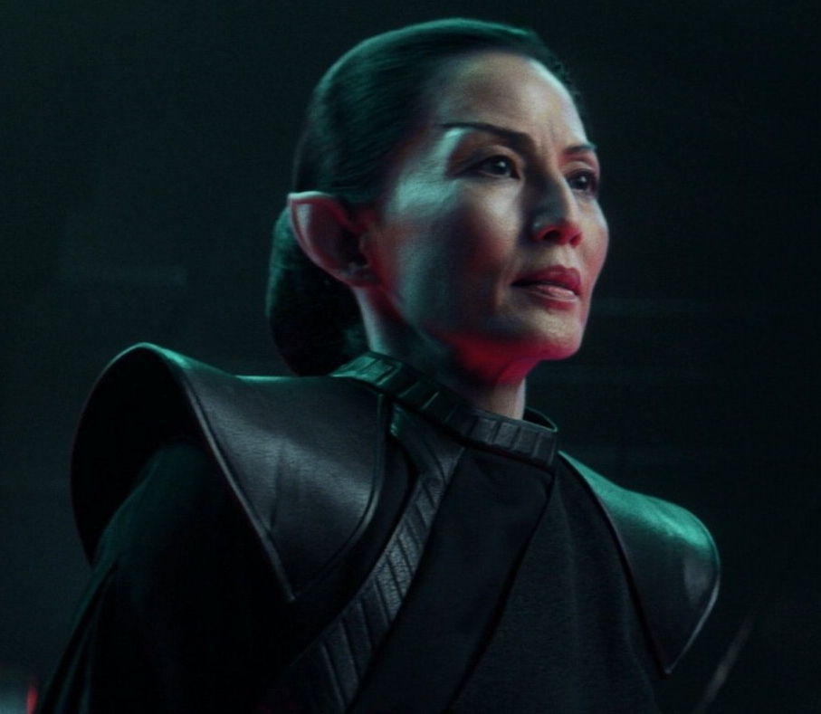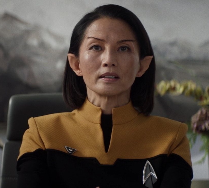 | Oh ist als Commodore für die Sicherheit der Sternenflotte verantwortlich. Obwohl man denken könnte, dass sie eine Vulkanierin ist, ist sie in Wirklichkeit eine verdeckt arbeitende Romulanerin vom Geheimbund der Zhat Vash. Gemeinsam mit der ebenfalls inkognito arbeitenden Narissa koordiniert sie die Suche und Jagd nach der Androidin Dahj Asha. Als sie diese nicht lebend gefangen nehmen können, konzentrieren sie sich auf die Zwillingsschwester Soji. Hier kommt Narissas Bruder Narek zum Einsatz, der subtiler vorgeht. Beide arbeiten zusammen auf einem romulanischen Borgkubus. Trotz seiner Beeinflussung, flieht Soji schließlich mit Jean-Luc Picard. Oh gibt ihre Tarnidentität auf und nimmt ebenso wie Narek und Narissa die Verfolgung auf, jedoch begleitet von einer ganzen Flotte romulanischer Raumschiffe. Es kommt zu einer Pattsituation mit der von Captain Riker geführten Flotte der Sternenflotte. Daraufhin zieht sie sich zurück. | |