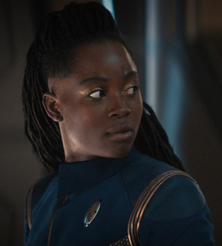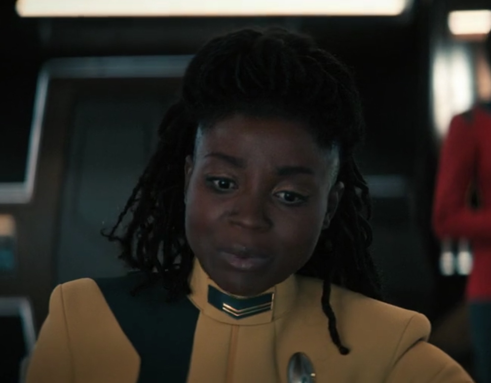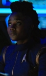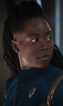 | Lieutenant JG Joann Owosekun dient als OPS Offizier auf der U.S.S. Discovery unter Captain Lorca und später auch unter Pike. Sie bleibt an Bord des Schiffes, als es unter Führung von Saru ins 32. Jahrhundert reist. Unter Captain Burnham fällt sie die Beföderungsleiter zum Lieutenant Commander hoch und dient weiter als OPS Offizier der Discovery. | |