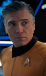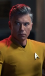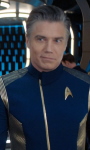Pike, Christopher Prä-Streaming Seite | Mensch ♂ | Captain | Captain der Enterprise | Captain Pike ist vor Kirk Kommandant der Enterprise. Während seiner ersten 5-Jahres-Mission mit der Enterprise stellt er Kontakt mit den Talosianern her, einer mächtigen Spezies, welche durch geistige Kräfte Illusionen erstellen kann und die Crew der Enterprise beeinflusst. Pike schafft es mit seinem Schiff von dem Planeten Talos IV zu fliehen, der daraufhin zur Sperrzone erklärt wird. Die Erlebnisse auf dem Planeten lassen ihn jedoch nicht mehr los. Während des Kriegs mit den Klingonen wird die Enterprise aus dem Geschehen herausgehalten. Nach ihrer Rückkehr hat sie diverse Systemausfälle und muss zunächst repariert werden. In dieser Zeit übernimmt Pike das Kommando über die U.S.S. Discovery. Während dieser Zeit kommt er mit einem Zeitkristall in Kontakt, der ihm seine Zukunft offenbar. Er rettet als Flottencaptain Kadetten vor dem Tod, doch das bring ihn in den Rollstuhl, unfähig selbst zu sprechen. Dennoch beschließt er dieses Opfer zu bringen und nichts an seinem Schicksal zu ändern. | ![]() |
