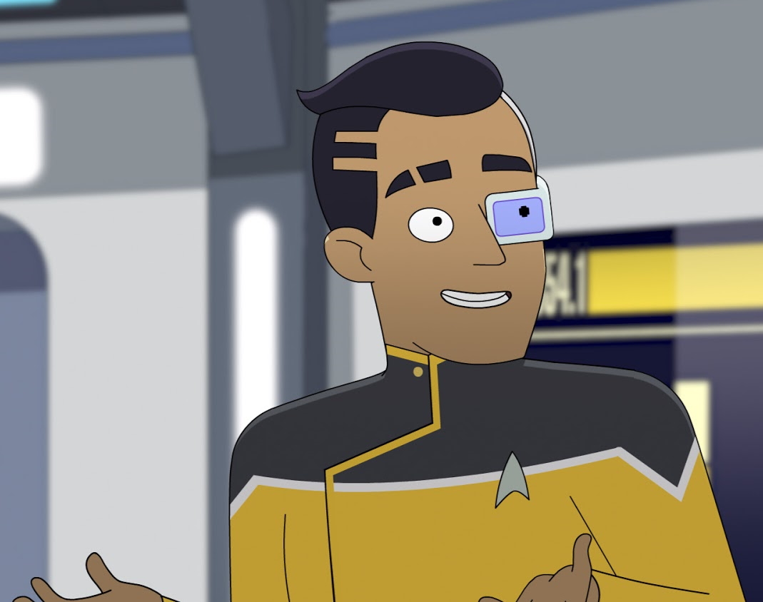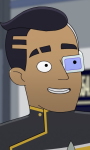| Der Mensch Ensign Samanthan Rutherford ist ein Ingenieur und dient auf der U.S.S. Cerritos. Er hat ein vulkanisches Implantat, welches ihm zeitweise Probleme macht. Er versteht sich sehr gut mit Tendi und war sogar bereit seine Abteilung für sie zu wechseln, blieb dann jedoch auch mit ihrem OK im Maschinenraum. Im Kampf mit Pakleds verliert er sein Implantat und damit auch alle Erinnerungen der letzten Zeit. Daraufhin freundet er sich neu mit seinen ehemaligen Freunden an, allen voran Tendi. | |