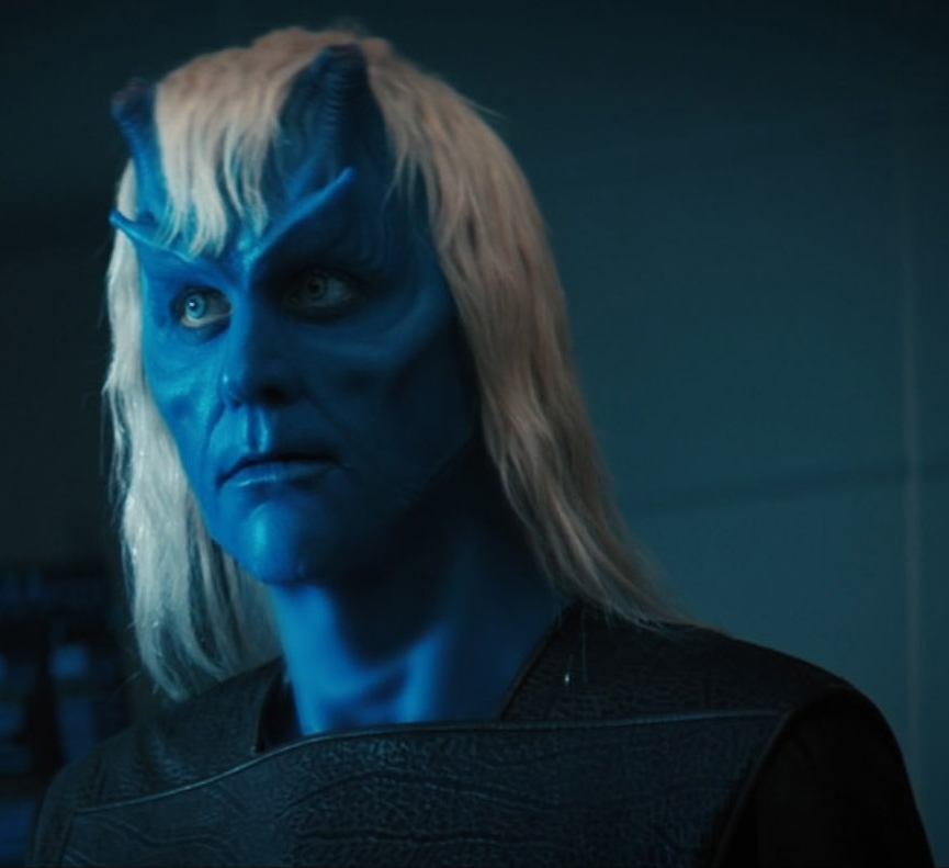 | Der Andorianer Ryn arbeitete für die Smaragd-Kette. Er weiß als einer von wenigen, dass ihnen die Dilitiumkristalle ausgehen und wurde wegen seines Wissens in eine Raumschiffverwertungsfabrik gesteckt. Zur Warnung wurden ihm jedoch beide Antennen abgehackt. (Warum diese nicht wie bei anderen Andorianern nachwachsen ist unklar.) Während seiner Arbeit in der Fabrik, lernt er den ebenfalls zwischenzeitlich dort gefangenen Book kennen und freundet sich mit ihm an. Gemeinsam gelingt ihnen dank der Discovery-Crew die Flucht. Er erhält auf dem Schiff medizinische Versorgung und bleibt vorerst an Bord. Als Captain Saru ihn nicht an die Smaragd-Kette ausliefert, offenbart er sein Wissen um die Dilitiumsitutation der Kette Ensign Tilly. Als die Kette die Discovery entert, hilft er der Crew und wird dabei von Osyraa getötet. | |