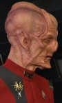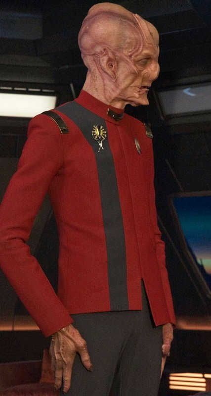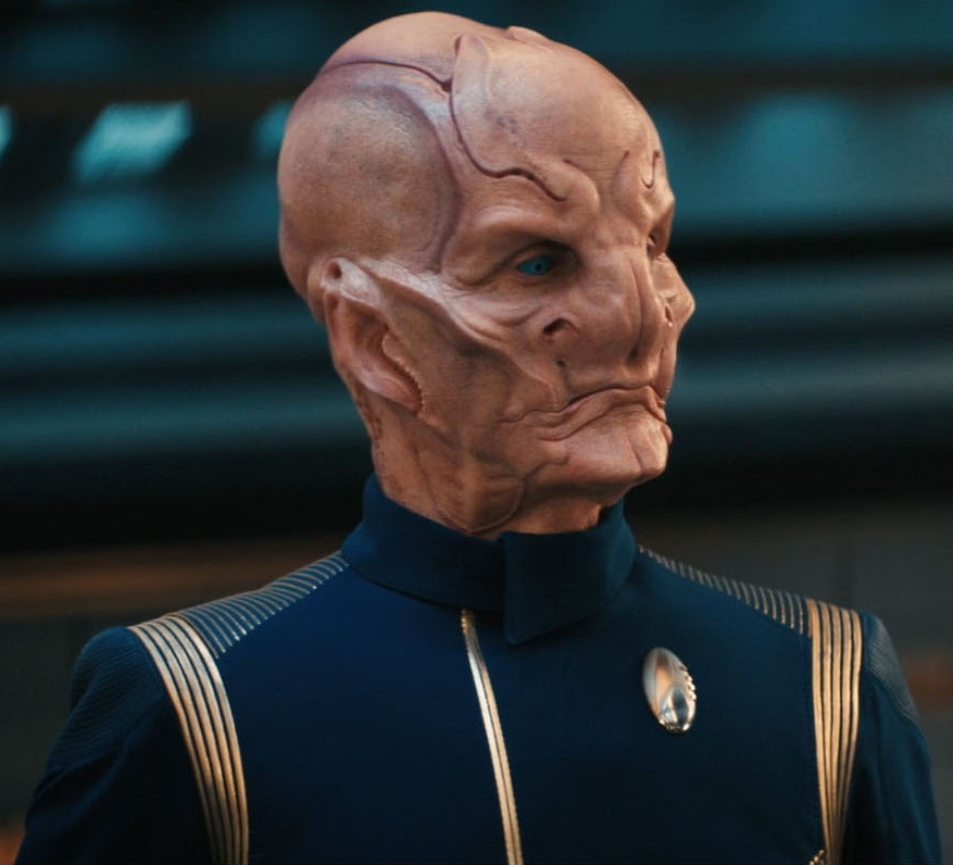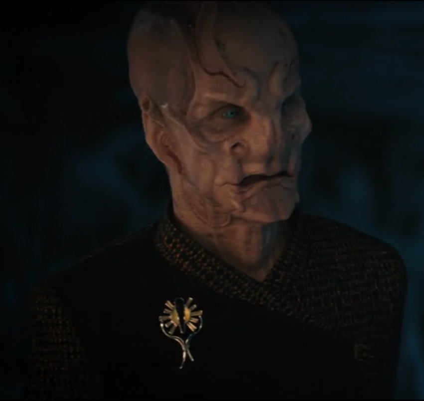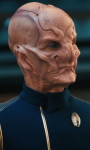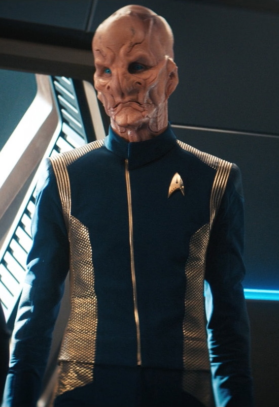 | Kelpianer sind eine nicht warpfähige Spezies, welche von einer höherentwickelten Spezies gezüchtet und regelmäßig "geerntet" wird. Sie können instinktiv Gefahr spüren und haben immer Angst. Auf der Flucht zu Fuß erreichen sie mit ihren Hufen Geschwindigkeiten von bis zu 80 km/h. Mit Hilfe gefundener Technologie die er umbaut, nimmt er Kontakt zur Sternenflotte auf und Lieutenant Georgiou holt Saru von seinem Planeten, ohne dass er die Chance haben wird jemals wieder zu seiner Schwester und seiner Familie zurück zu kehren. Er wird als Flüchtling anerkannt und lernt unglaubliche 90 Sprachen der Föderation. Später dient er als Wissenschafts- und Zweiter Offizier auf der U.S.S. Shenzhou uner Captain Georgiou. Lieutenant Commander Saru gilt durch seiner Spezies als übervorsichtig. Als Michael Burnham gegen Captain Georgiou meutert, weigert er sich ihre Befehle auszuführen, ehe Burnham gestoppt und in die Arrestzelle geworfen wird. Im folgenden Kampf mit den Klingonen wird das Schiff schwer beschädigt und muss aufgegeben werden. Captain Georgiou stirbt und Saru macht Burnahm persönlich dafür verantwortlich, er glaubt sie hat ihm die Chance genommen als Erster Offizier unter Georgiou zu dienen und so von ihr zu lernen. Sechs Monate später ist Saru zum Commander und Ersten Offizier der U.S.S. Discovery aufgestiegen. Als Captain Lorca dafür sorgt, dass Burnham an Bord kommt akzeptiert er sie im Gegensatz zu anderen Crewmitgliedern schließlich als Besatzungsmitglied, als sie gute Arbeit bei der geheimen Mission des Schiffes leistet. Nach dem Verlust des Captains der Discovery übernimmt Saru zwischenzeitig das Kommando über das Schiff, bis der neue Captain zugewiesen werden soll. Dazu kommt es jedoch nicht, da Captain Pike das Kommando übernimmt und mit der Discovery den "Roten Engel" jagt. Bei einer der Zwischenstationen erreicht die Discovery den Heimatplaneten Sarus. Dort trifft er erneut auf seine Schwester. Es gibt einen biologischen Prozess der bei Kelpianern einsetzen kann, um ihren Körper auf den Tod und die "Ernte" vorzubereiten. Dieser Prozess wird durch ein fremdes Wesen bei Saru ausgelöst. Dadurch verliert Saru seine Ganglien und er kann ohne andauernde Angst leben. Er erkennt, dass sein Volk dadurch frei werden und die Angst abschlütteln könnte. Dadurch könnten sie die Ernte ihrer Spezies vielleicht beenden und er beginnt diesen Prozess global bei seiner Spezies in Gang zu setzen. Unter seinem Kommando reist die Discovery ins 32. Jahrhundert, um der KI Control und allen potentiellen weiteren Interessierten den Zugriff auf die Sphärendaten des Schiffes zu entziehen. Mit Einwilligung von Commander Burnham, die er zu seinem Ersten Offizier macht, ernennt er sich zum Captain der Discovery und schließt sich mit Schiff und Crew der Sternenflotte an. Während der Missionen des Schiffes in dieser Zeit, sind sie dem Brand auf der Spur. Letzten Endes stellt sich heraus, dass ein kelpianisches Waisenkind der Auslöser dafür war. Saru nimmt sich des Waisen an und geht mit ihm zu seinem Heimatplaneten. Er verlässt den aktiven Dienst und setzt sich dafür ein, dass trotz aller Differenzen mit Burnahm und unterschiedlicher Ansichten, diese nach ihm Captain der Discovery wird. Sarus Meinung scheint auf seiner Heimatwelt Gewicht zu haben, denn er ist Mitglied des ältestenrats seines Dorfes geworden. Dennoch sehnt er sich nach der Discovery und seinen Freunden zurück. Nach Zusprache des vor fünf Monaten geretteten Kelpianers, beschließt er, dass er seiner Welt auch draußen im All dienen kann. Die Sternenflotte heißt ihn Willkommen und bietet ihm ein neues Kommando an, doch er lehnt ab und bietet Captain Burnham seine Dienste als Erster Offizier auf der Discovery an, um die plötzlichen auftretenden Gravitationsanomalien zu untersuchen. An seiner Uniform trägt er als älterster ein kelpianisches Emblem. Da er vom Dienstgrad her Captain ist, akzeptiert er die Anrede 'Mister' Saru an Bord. |