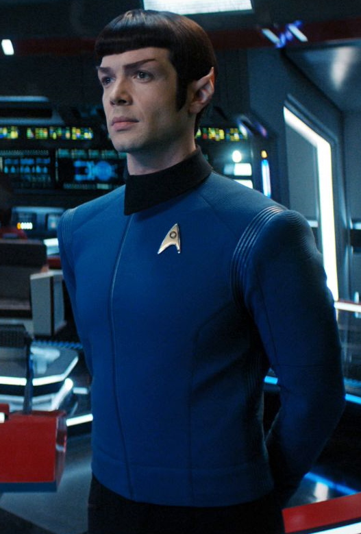 Spock Prä-Streaming Seite | Vulkanier / Mensch ♂ | Lieutenant | Wissenschafts-offizier der Enterprise | Spock wächst als menschlich-vulkanisches Mischlingskind bei seiner Mutter Amanda und seinem Vater Sarek auf Vulkan auf. Er kommt offenbar nur schwer mit seinen Gefühlen zurecht und als Michael Burnham von Sarek als Ziehkind aufgenommen wird und mit ihm zusammen aufwächst, entwickeln sich schnell Spannungen zwischen den beiden Kindern. Als Spock nach seiner Ausbildung sich weigert der vulkanischen Expeditionsgruppe beizutreten, welcher sein Vater extra für ihn freigehalten und Michael Burnham verweigert hatte, entzweien sich Vater und Sohn und reden nicht mehr miteinander. Spock tritt trotz des Widerspruchs seines Vaters als erster Vulkanier der Sternenflotte bei. Als Lieutenant dient er als leitender Wissenschaftsoffizier auf der U.S.S. Enterprise unter Captain Pike. Während der Fünfjahresmission des Schiffes kommt es zum Krieg mit den Klingonen, die Sternenflotte beschließt jedoch die Enterprise nicht zurück zu rufen, sondern als Trumpf zurückzuhalten. Nachdem der Krieg beendet ist, tauchen sieben geheimnisvollen Signale auf und Spock verschwindet zunächst spurlos. Es stellt sich heraus, dass Spock schon als Kind Kontakt zu dem "Roten Engel" hatte, welcher die Signale scheinbar auslöst und sich als Zeitresender entpuppt. Spock hatte sich versteckt, da er seine Logik für fehlerhaft und sich selbst für verrückt hält, doch als die Discovery ihn findet unterstützt er sie bei dem Versuch Control zu stoppen und nimmt danach wieder seinen Dienst auf der Enterprise auf. Spock dient anschließend weiter als Wissenschaftsoffizier der Enterprise. | |