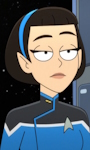 | Die Vulkanierin T'Lyn dient auf dem vulkanischen Schiff Sh'vhal, wo sie durch ihre unkonventionelle Art aneckt. Ihre Schiffskameraden sehen sie zudem als zu emotional an. Ihre unkonventionelle Art rettet jedoch die Cerritos, was dazu führt, dass sie nicht wie erwartet nach Vulkan versetzt wird, sondern auf ein Schiff der Sternenflotte: die Cerritos. T'Lyn erhält den provisorischen Rang eines Ensigns und wird der Wissenschaft zugewiesen, wo sie gemeinsam mit Ensign Tendi ausgebildet werden soll. | |