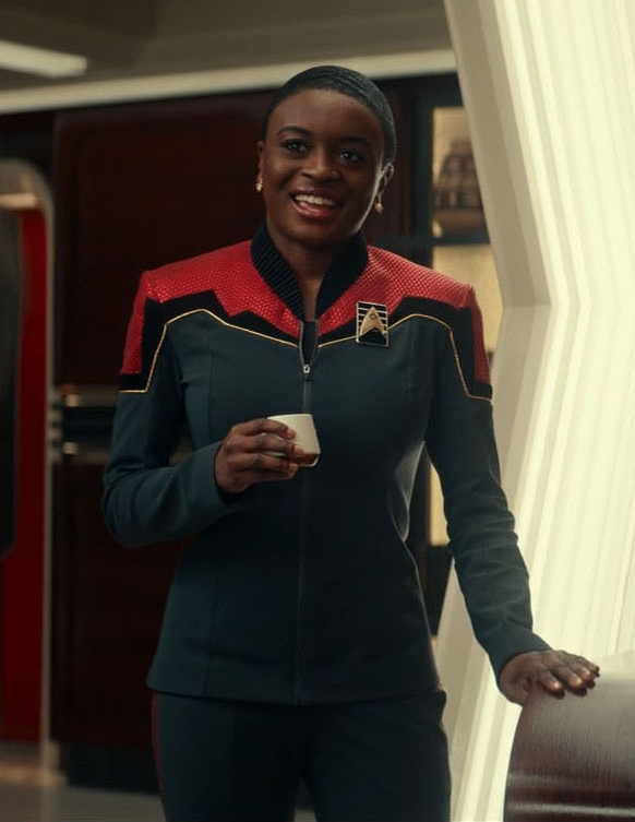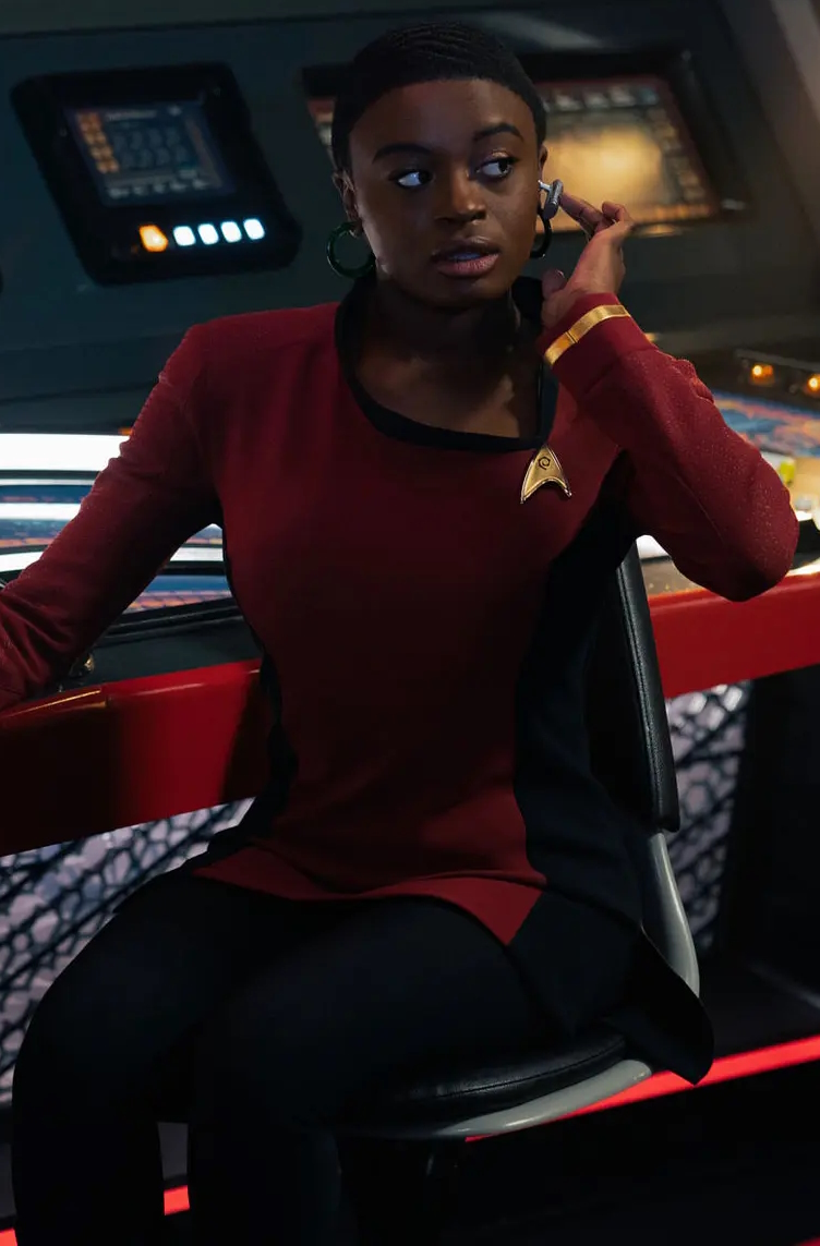 Uhura, Nyota Prä-Streaming Seite | Mensch ♀ | Ensign | Kommunikationsoffizier der Enterprise | Nyota Uhura wächst in Kenia auf. Ihre Eltern sind beide Lehrer, bis diese gemeinsam mit Nyotas Bruder bei einem Shuttleunfall sterben. Dadraufhin zieht sie zu ihrer Oma, welche früher bei der Sternenflotte war und so Uhura dazu bringt ebenfalls die Akademie zu besuchen. Uhura mag es Musik zu spielen und singt gerne. Sie gilt als Sprachgenie und beherrscht mehr als 37 unterschiedliche Sprachen. Als Kadettin kommt sie in ihrem vierten Jahr auf die Enterprise unter dem Kommando von Captain Pike und setzt sich dafür gegen tausende Mitbewerber durch. Dennoch hadert sie, ob die Sternenflotte das Richtige für sie ist. Auch dank Mr. Spock verfolgt sie weiter ihre Ausbildung und durchläuft an Bord des Schiffes die unterschiedlichen Abteilungen. Immer wieder wird jedoch ihr Sprachwissen gefordert. Sie hadert damit ihre Zukunft in der Sternenflotte zu sehen, entschließt sich dann jedoch nach dem Zuspruch ihrer Kollegen nach ihrer Beförderung zum Ensign dauerhaft Kommunikationsoffizier auf der Enterprise unter Captain Pike zu werden. | |