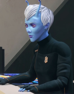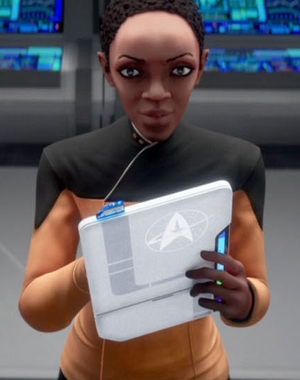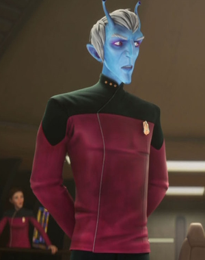 Spätestens 2384 ist neben den anderen Uniformen dieser Zeit, welche zum Beispiel auf der Cerritos getragen wird, eine etwas abgewandelte Version im Einsatz. Die Farbgebung entspricht weiterhin dem klassischen rot für Kommando, gold/gelb für Sicherheit/Technik und blau für Wissenschaft/Medizin. Hosen und Schulterpartien sind schwarz gehalten, wenn auch die Schultern mit einem weißen Streifen abgesetzt sind. Die Uniformjacke kann vorne geöffnet werden. Kadetten tragen einfachere schwarz-weiße Uniformen.