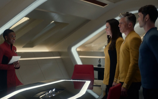 Die Serie Die Enterprise unter dem Kommando von Captain Pike bricht zu ihrer 5-Jahes-Mission auf. Mit an Bord sind viele der Crewmitglieder, welche später auch unter Captain Kirk auf der Enterprise dienen, darunter allen voran Mr. Spock und Uhura. In Staffel 2 bekommt dann auch James Kirk seinen Auftritt. Anders als die anderen neuen Star Trek Serien, verfolgt Strange New Worlds wieder das Konzept der Einzelabenteuer, die in einer Episode abgeschlossen sind, auch wenn es natürlich ein paar episodenübergreifende Charakterentwicklungen und Storyelemente gibt.  Hintergründe Der Erfolg von Star Trek: Discovery auf dem hauseigenen Streamingdienst von CBS/Paramont ermöglichte die Realisierungen diverser Star Trek Serien. Als Spinoff von Discovery bekam die Enterprise unter Captain Pike 2022 eine eigene Serie. In der zweiten Staffel von Discovery hatte das Schiff und einige Personen bereits Gastauftritte. Mit überarbeiteten Sets und Uniformen wollte man wieder mehr in den Einzelepisodenstil der alten Star Trek Serien zurückgehen. Die erste Staffel wurde zu einem Hit und so überlebte die Serie die Budgetkürzungen des Hauseigenen CBS Streamingdienstes, anders als Discovery. 2023 ist die zweite Staffel bereits abgedreht und die dritte befindet sich in Planung. | Die Enterprise bei Starbase 1: Bereit zum Transport: Auf der Brücke der Enterprise: Besprechung der Crew: Die Enterprise bei einem Ionensturm: Ein Gornschiff bei einem Schwarzen Loch: Pike auf diplomatischer Mission: Bergung eines abgestürzten Schiffes: |