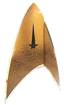 Das bekannte Pfeilsymbol ist als Metallemblem auf der Uniform vorhanden und ebenfalls der Abteilung entsprechend eingefärbt, bei Flaggoffizieren ist es mit dem Lorbeerkranz umgeben. Innerhalb des Emblems ist die Zugehörigkeit des Fachbereichs erkennbar: ein Stern für die Kommandoebene, eine Spirale für Techniker und zwei sich überschneidende Kreise für Wissenschaftler. Mediziner haben ein Kreuzsymbol in ihrem Emblem.