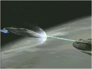Bei aktivierten Schilden kann nicht gebeamt werden, da der Transporterstrahl die Schilde nicht durchdringen kann.