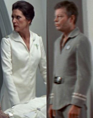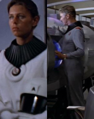 Die Uniformen selbst hingegen sind bei Kommando weiß oder blau, Wissenschaft/Technik blau, weiß oder braun und bei Sicherheit braun. Standardmäßig wurden die Uniformen mit Gürteln mit einem persönlichen Biomonitor ausgestattet.