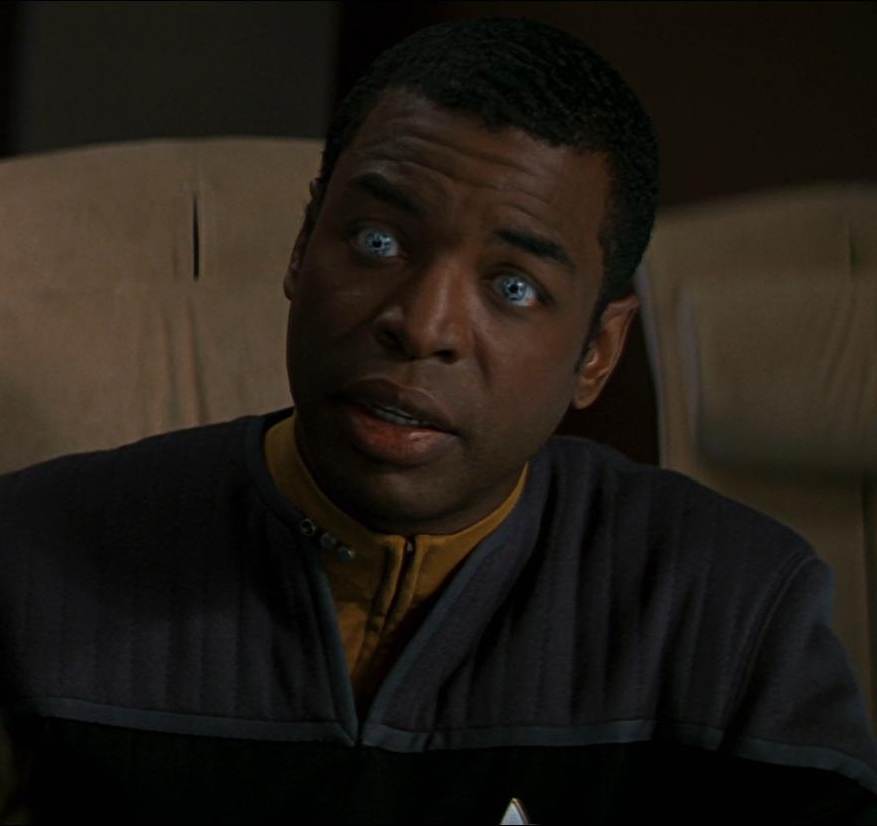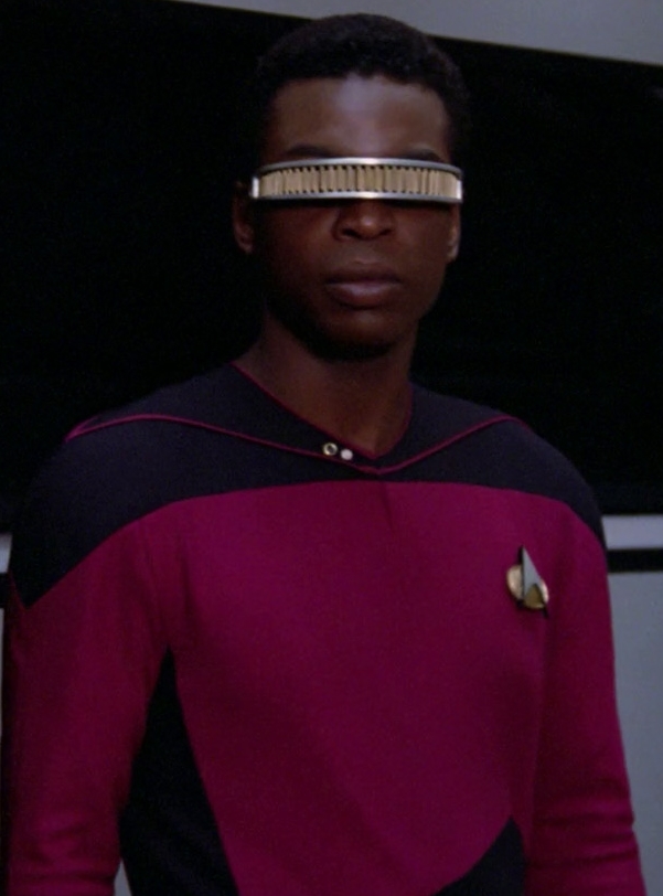 Geordi La Forge ist seit der Geburt blind. Er kann nur mit Hilfe eines "Visors" sehen und damit um einiges mehr wahrnehmen, als Augen normaler Menschen.