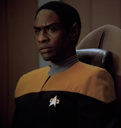 (Tuvok ist zu diesem Zeitpunkt ein Lieutenant, hat jedoch in Staffel 1 Lt. Commander Abzeichen an seiner Uniform. Ein Fehler der erst im Laufe der Staffel korrigiert wird. Später wird er zum Lt. Commander befördert.)