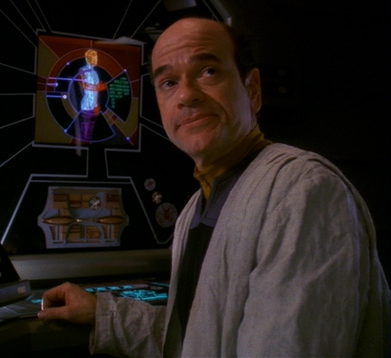 Als er neben dem MHN ein medizinisches Langzeitprogramm entwickeln möchte, welches zum Beispiel auf Missionen zum Einsatz kommen kann, auf denen kein lebender Arzt benötigt wird oder es die Ressourcen nicht hergeben, beschließt er Dr. Bashir von Deep Space Nine als Vorlage zu nehmen. Diese Pläne werden jedoch fallengelassen, als sich herausstellt, dass Bashir genetisch aufgewertet ist, vermutlich wird eine andere Person als Vorlage genommen.