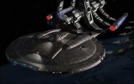 (Eigentlich war geplant, dass die Enterprise während des irdisch-romulanischen Kriegs einen Umbau erhalten soll und vergrößert wird. Durch das vorzeitige Ende von Star Trek: Enterprise erfolgte dieser Umbau nur in der Romanfortsetzung der Serie und die Enterprise ist in der letzten TV-Folge noch in ihrer alten Konfiguration zu sehen.) |