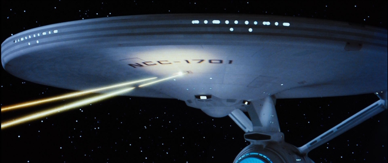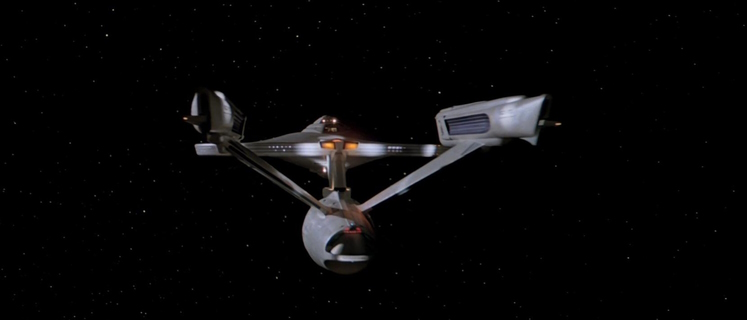 U.S.S. Enterprise NCC-1701 // Constitution-Klasse (Refit) // Konstruiert in der San Francisco Flottenwerft // Stapellauf 2245 // Umbau 2269-2271 // Zerstörung 2285 // Länge 305 Meter // 21 Decks // Höchstgeschwindigkeit Warp 8 // Captains Kirk, Decker, Spock // bis zu 450 Personen Besatzung