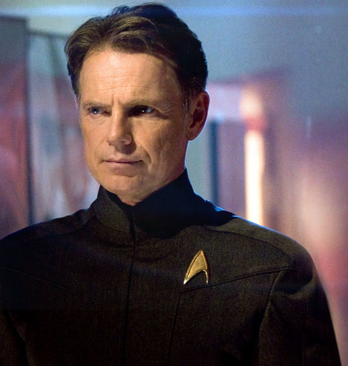 Captain Pike rekrutiert Jim Kirk für die Sternenflotte. Kurzzeitig übernimmt er während der Nero-Krise das Kommando der Enterprise und wird anschließend zum Admiral befördert. (Star Trek)