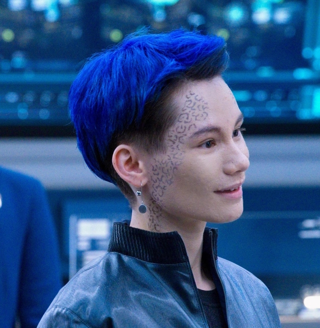 | Der Trill Grey war mit der Menschenfrau Adira zusammen. Er war nur kurzzeitig der Wirt des Tal-Symbionten im 32. Jahrhundert und trug den Namen Grey Tal. 3188 starb er und der Symbiont wurde provisorisch mit Adira vereinigt. Da sie ein Mensch ist, hat diese Vereinigung nicht vollständig geklappt. Sie kann nicht wie vereinigte Trill bewusst auf die Erinnerungen der vorherigen Wirte zugreifen. Dafür erscheint ihr Grey. Gray erhält schließlich einen Androidenkörper, mit der Technologie, welche AI Soong im 24. Jahrhundert bei Picard verwendete. Damit kann die Persönlichkeit von Adira Tal mit Hilfe des Zhian'tara Rituals abgespalten und in einen eigenen Körper versetzt werden, der auf mehr oder weniger natürliche Art altern und sterben und somit auch wieder mit Adira zusammen sein kann. Sie selbst lebt fortan ohne diese Persönlichkeit Tals weiter und Grey kann sein eigenes Leben fortsetzen. Auch die restliche Crew, allen voran Dr. Culber, verstehen sich sehr gut mit ihm. Sein Traum ist es, ein Wächter zu werden und sich um die Symbionten auf der Trill Heimatwelt zu kümmern. Dennoch bleibt er vorerst auf der Discovery bei seiner Freundin Adira, bis diese ihn nach Trill gehen lässt, damit er dort seine Ausbildung beginnen kann. | |