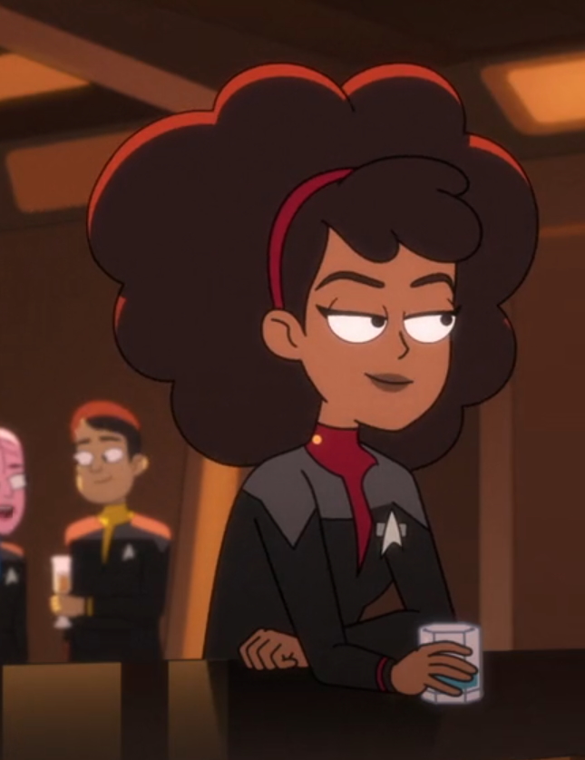 | Der Mensch Ensign Beckett Mariner arbeitet auf der U.S.S. Cerritos. Sie ist die Tochter von Captain Freeman, will jedoch lieber auf eigenen Füßen stehen. Sie hat zuvor bereits auf der USS Quito gedient, findet jedoch aktuell ihren Posten und Rang super. Regeln nimmt sie nicht so genau. | |