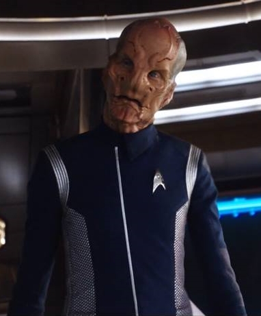 | Kelpianer sind eine nicht warpfähige Spezies, welche von einer höherentwickelten Spezies gezüchtet und regelmäßig "geerntet" wird. Sie können instinktiv Gefahr spüren und haben immer Angst. Auf der Flucht zu Fuß erreichen sie mit ihren Hufen Geschwindigkeiten von bis zu 80 km/h. Mit Hilfe gefundener Technologie die er umbaut, nimmt er Kontakt zur Sternenflotte auf und Lieutenant Georgiou holt Saru von seinem Planeten, ohne dass er die Chance haben wird jemals wieder zu seiner Schwester und seiner Familie zurück zu kehren. Er wird als Flüchtling anerkannt und lernt unglaubliche 90 Sprachen der Föderation. Später dient er als Wissenschafts- und Zweiter Offizier auf der U.S.S. Shenzhou uner Captain Georgiou. Lieutenant Commander Saru gilt durch seiner Spezies als übervorsichtig. Als Michael Burnham gegen Captain Georgiou meutert, weigert er sich ihre Befehle auszuführen, ehe Burnham gestoppt und in die Arrestzelle geworfen wird. Im folgenden Kampf mit den Klingonen wird das Schiff schwer beschädigt und muss aufgegeben werden. Captain Georgiou stirbt und Saru macht Burnahm persönlich dafür verantwortlich, er glaubt sie hat ihm die Chance genommen als Erster Offizier unter Georgiou zu dienen und so von ihr zu lernen. Sechs Monate später ist Saru zum Commander und Ersten Offizier der U.S.S. Discovery aufgestiegen. Als Captain Lorca dafür sorgt, dass Burnham an Bord kommt akzeptiert er sie im Gegensatz zu anderen Crewmitgliedern schließlich als Besatzungsmitglied, als sie gute Arbeit bei der geheimen Mission des Schiffes leistet. Nach dem Verlust des Captains der Discovery übernimmt Saru zwischenzeitig das Kommando über das Schiff, bis der neue Captain zugewiesen werden soll. Dazu kommt es jedoch nicht, da Captain Pike das Kommando übernimmt und mit der Discovery den "Roten Engel" jagt. Bei einer der Zwischenstationen erreicht die Discovery den Heimatplaneten Sarus. Dort trifft er erneut auf seine Schwester. Es gibt einen biologischen Prozess der bei Kelpianern einsetzen kann, um ihren Körper auf den Tod und die "Ernte" vorzubereiten. Dieser Prozess wird durch ein fremdes Wesen bei Saru ausgelöst. Dadurch verliert Saru seine Ganglien und er kann ohne andauernde Angst leben. Er erkennt, dass sein Volk dadurch frei werden und die Angst abschlütteln könnte. Dadurch könnten sie die Ernte ihrer Spezies vielleicht beenden und er beginnt diesen Prozess global bei seiner Spezies in Gang zu setzen. Unter seinem Kommando reist die Discovery ins 32. Jahrhundert, um der KI Control und allen potentiellen weiteren Interessierten den Zugriff auf die Sphärendaten des Schiffes zu entziehen. Mit Einwilligung von Commander Burnham, die er zu seinem Ersten Offizier macht, ernennt er sich zum Captain der Discovery und schließt sich mit Schiff und Crew der Sternenflotte an. Während der Missionen des Schiffes in dieser Zeit, sind sie dem Brand auf der Spur. Letzten Endes stellt sich heraus, dass ein kelpianisches Waisenkind der Auslöser dafür war. Saru nimmt sich des Waisen an und geht mit ihm zu seinem Heimatplaneten. Er verlässt den aktiven Dienst und setzt sich dafür ein, dass trotz aller Differenzen mit Burnahm und unterschiedlicher Ansichten, diese nach ihm Captain der Discovery wird. Sarus Meinung scheint auf seiner Heimatwelt Gewicht zu haben, denn er ist Mitglied des ältestenrats seines Dorfes geworden. Dennoch sehnt er sich nach der Discovery und seinen Freunden zurück. Nach Zusprache des vor fünf Monaten geretteten Kelpianers, beschließt er, dass er seiner Welt auch draußen im All dienen kann. Die Sternenflotte heißt ihn Willkommen und bietet ihm ein neues Kommando an, doch er lehnt ab und bietet Captain Burnham seine Dienste als Erster Offizier auf der Discovery an, um die plötzlichen auftretenden Gravitationsanomalien zu untersuchen. An seiner Uniform trägt er als älterster ein kelpianisches Emblem. Da er vom Dienstgrad her Captain ist, akzeptiert er die Anrede 'Mister' Saru an Bord. |