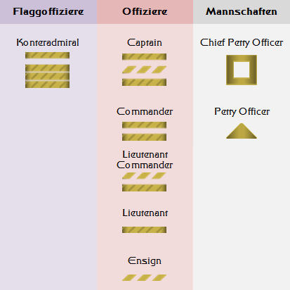 Das Abzeichen ist beim Admiral aus Metall, bei den Offiziers- und Mannschaftsrängen jedoch aufgenäht und mit Abteilungsfarben versehen. Auf Raumstationen gibt es unterschiedliche Abzeichen, welche jedoch auch mit den Abteilungsfarben versehen sind.