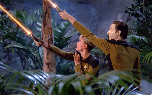 ![]() Erst 1987 entstand die zweite Star Trek Realserie The Next Generation, in Deutschland auch unter Raumschiff Enterprise: Das nächste Jahrhundert bekannt. Diese Serie spielte im 24. Jahrhundert und zeigte ein Nachfolgeschiff der Ur-Enterprise, die Enterprise-D. Vor allem in den ersten Staffeln wurden noch Ideen verwertet, welche ursprünglich für Phase II Serie erstellt wurden. Während die Originalcrew eher actionlastig unterwegs war, fand die Serie schließlich ihren eigenen Stil und behandelte ernstere Themen und moralische Dilemma. Die Crew unter Captain Picard erforscht neue Planeten, Zivilisationen und Kulturen. Nebenbei wird die Waffenruhe mit den Klingonen gewahrt und mehr als einmal der Frieden im Reich durch die Enterprise geschützt. Mit dazu beigetragen hat auch der einzige Klingone in der Sternenflotte, Lieutenant Worf. Zudem tauchen nach vielen Jahren die Romulaner wieder auf und sorgen für einige Konflikte. Das allmächtige Wesen Q, welches immer wieder auf der Enterprise auftaucht und in Picard seinen Lieblingscaptain gefunden hat, stellt den künftigen schlimmste Gegner der Föderation vor, die Borg. Um auch alte Fans zum Zuschauen zu motivieren, hatten Spock, Scotty und Pille Gastauftritte in der Serie. Doctor McCoy erlebte in sehr hohem Alter im Rang eines Admirals noch den Stapellauf der Enterprise-D mit. Im Vergleich zur Originalserie waren hier natürlich schon deutlich bessere Effekte an der Tagesordnung. Die Folgen selbst wurden zwar auf richtigem Film gedreht, der finale Schnitt der Episoden und die Effekte erfolgten jedoch nur auf Video. ![]() Als man sich 2012 zu einer Neuauflage auf BluRay entschied (TNG Remastered), musste also die komplette Serie überarbeitet werden. Dies führte zu deutlich größerem Aufwand als bei der remasterten Classic Serie. Nach dem Abtasten der Negative mussten der komplette Schnitt und auch sämtliche Effekte neu erstellt werden. Die Modellaufnahmen wurden größtenteils beibehalten. So bekam die Serie ein qualitativ stark verbessertes Bild und neue Effekte spendiert. Um die Überarbeitung schnell abzuschließen, wurde neben "CBS" auch eine weitere Firma "HTV" beauftragt, welche zeitgleich unterschiedliche Staffeln überarbeiten. Das Bild ist vom Ausgangsmaterial ausgehen hervorragend, viele Effekte sehen super aus und es wurden logische Fehler korrigiert. Doch nicht immer ist eine höhere HD Auflösung besser. Teilweise sieht das Make-Up nun zu kräftig aus oder man erkennt kaputte Stellen an Requisiten. Die Teams welche für die Neuauflage zuständig waren standen zudem aber scheinbar unter enormen Zeitdruck die Staffeln möglichst schnell fertigzustellen. Vor allem die Qualität der "HTV" Überarbeitungen (Staffel 2,4,6) lassen teilweise zu wünschen übrig: ![]() ![]() Einige Doppelfolgen wurden in Spielfilmlänge einzeln auf BluRay angeboten, diese enthalten exklusive Boni, wie Kommentare und Deleted Scenes. Die Episode "Wem gehört Data?" bekam zudem einen längeren (englischsprachigen) Director's Cut spendiert. Beim BluRay Release erhielt das Finale "Gestern, Heute, Morgen" in Deutschland den Titel "Die Guten Dinge" nach dem Originaltitel "All Good Things...". ![]() Kaum zu glauben: Wesley Crusher wurde zum Fähnrich ehrenhalber befördert ("acting Ensign") und erhielt später eine Feldbeförderung zum vollen Fähnrich. Hier ist die deutsche Übersetzung jedoch fehlerhaft und er wurde in der betreffenden Episode zum Lieutenant befördert. | Bilder aus der Serie: ![]() ![]() ![]() ![]() ![]() ![]() ![]() ![]() ![]() ![]() ![]() |
